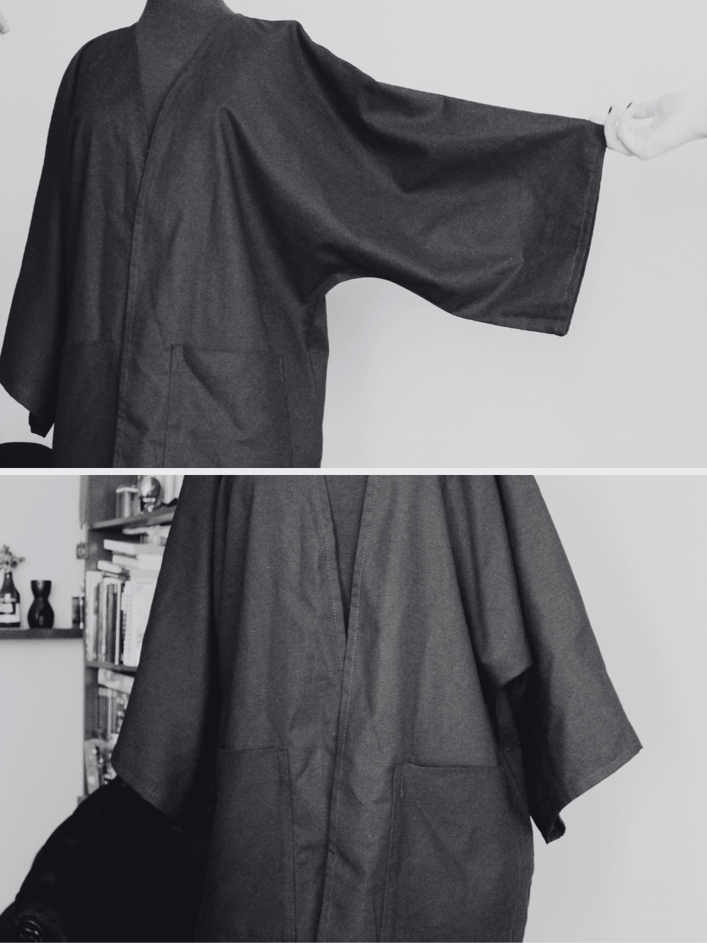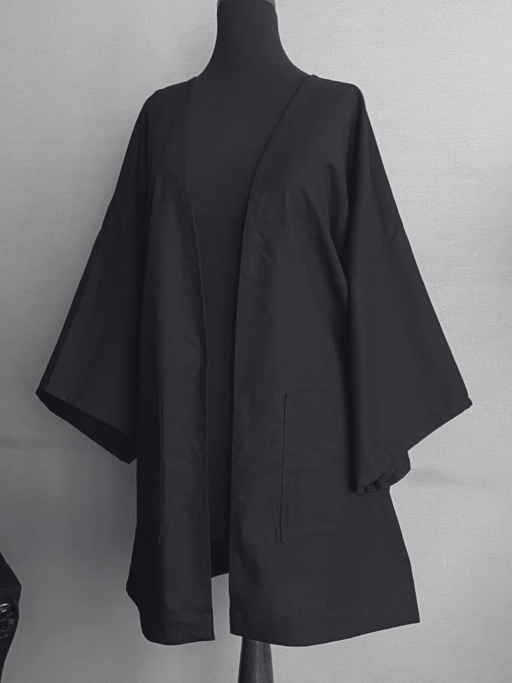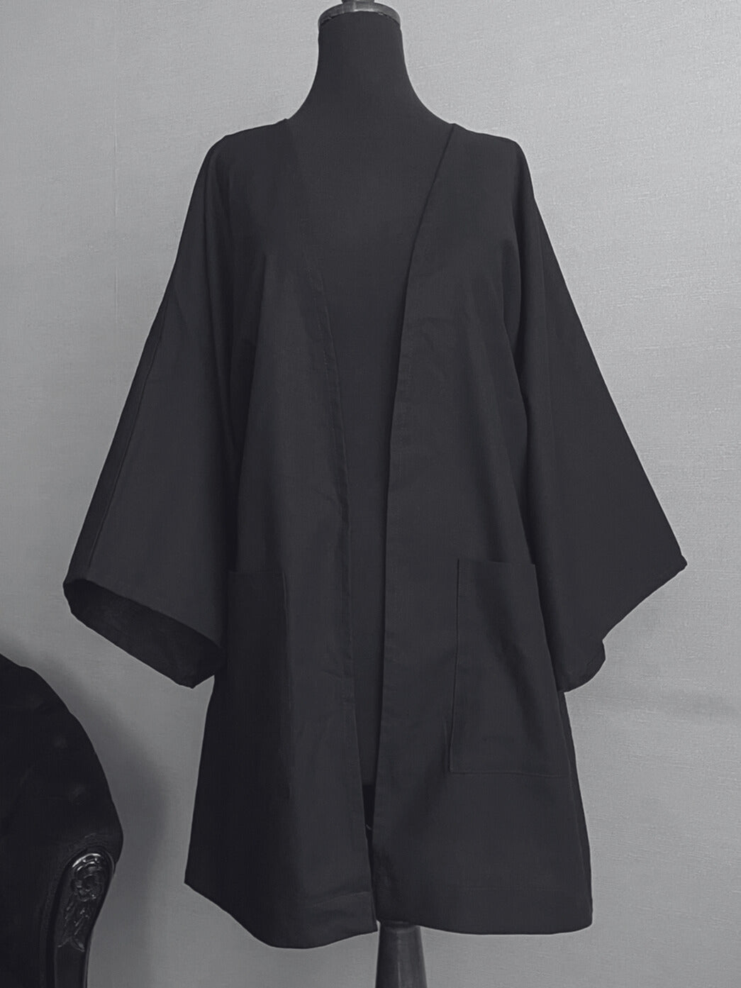 Inspirado en la influencia oriental victoriana ~ Confeccionado en lino o en paño de lana, posee bolsillos delanteros y manga larga ~ Forrado en algodón ~